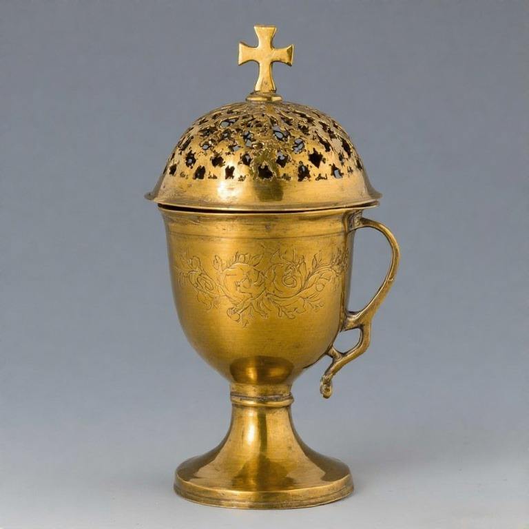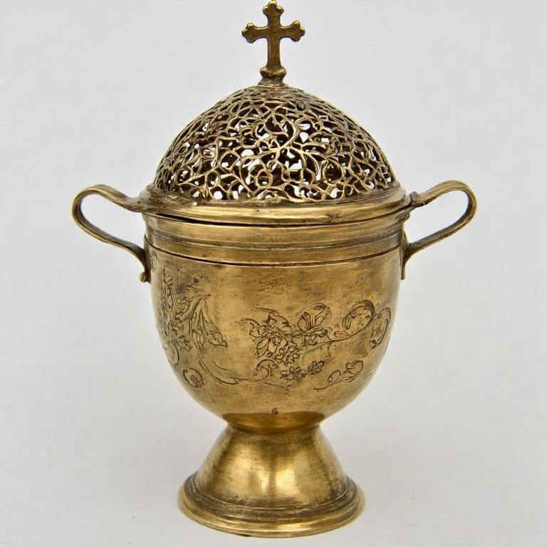กระถางธูปทองเหลืองแบบดั้งเดิมสำหรับใช้ในพิธีและบรรยากาศทางจิตวิญญาณ