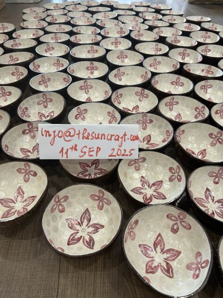 ชามมะพร้าวทำมือแบบปรับแต่งได้ลายดอกไม้ศักดิ์สิทธิ์ ขอบเคลือบฟอยล์ ขายส่งสำหรับผู้ค้าปลีก