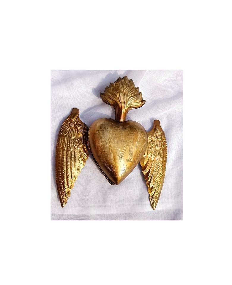 Milagros หัวใจศักดิ์สิทธิ์ที่มีปีกในทองโบราณสำหรับตกแต่งบ้าน