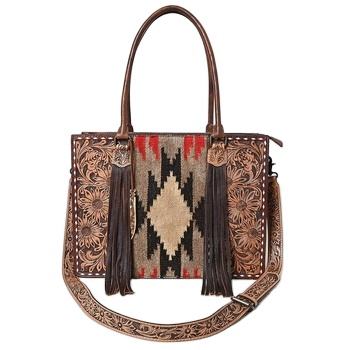 กระเป๋าทรงโท้ทหนังวัวแท้โบฮีเมียนสไตล์ตะวันตกสำหรับฤดูใบไม้ร่วงและใบไม้ร่วง