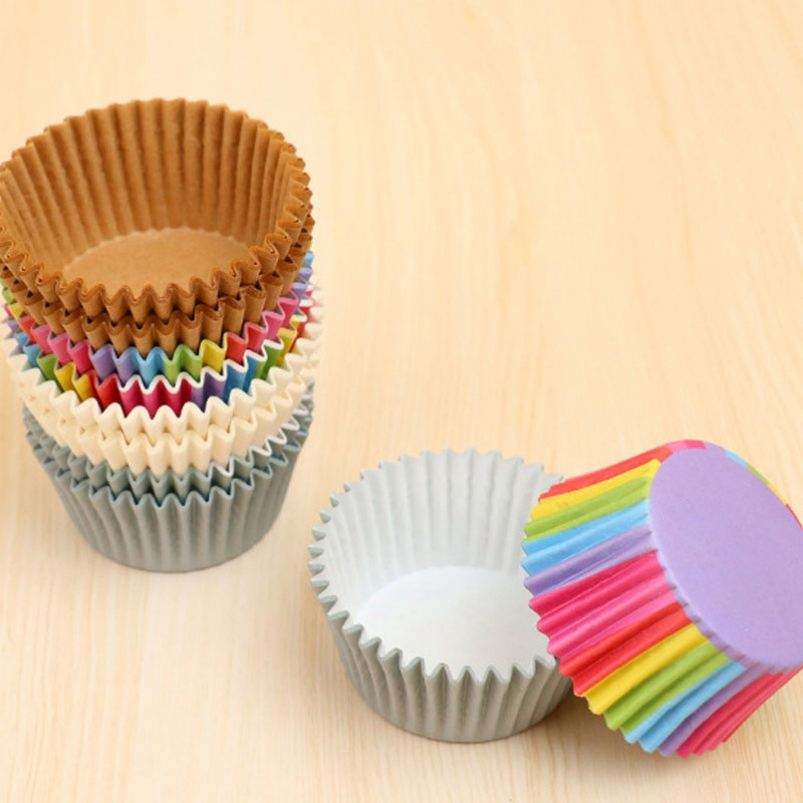 ถ้วยกระดาษอบ100ชิ้นหลากสีสำหรับปาร์ตี้วันหยุดคัพเค้กเกรดอาหารปลอดภัยเป็นมิตรกับสิ่งแวดล้อม