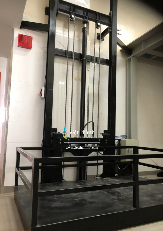 ลิฟท์ยกสินค้าระบบไฮดรอลิกความสูง4ม. ปลอดภัยและประหยัด500กก. สำหรับคลังสินค้ารางนำทางแนวตั้งรับประกัน1ปีจากเวียดนาม