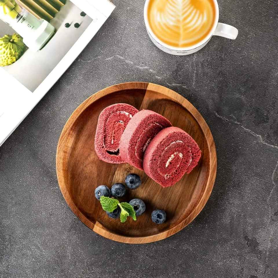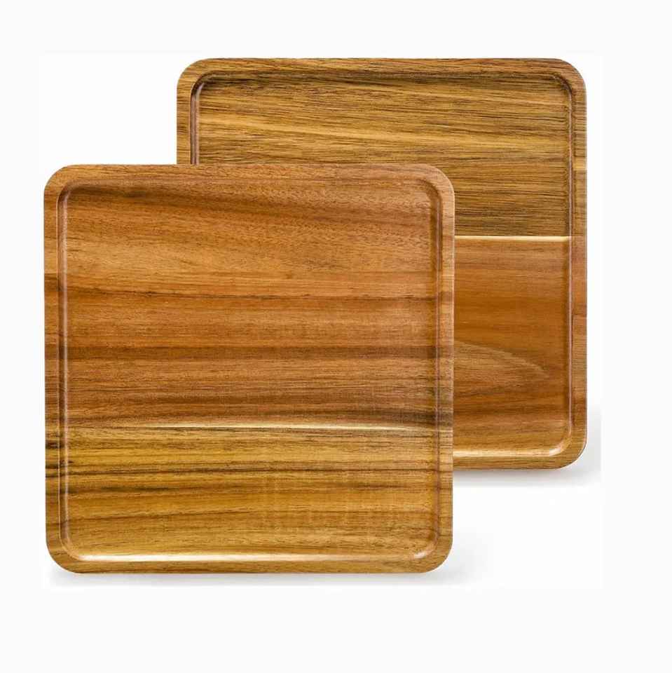 แผ่นไม้ที่ปลอดภัยและยั่งยืนสำหรับอาหารและจานในไม้มะม่วงและอะคาเซียธรรมชาติที่มีพื้นผิวดิบและงานฝีมือทำด้วยมือ