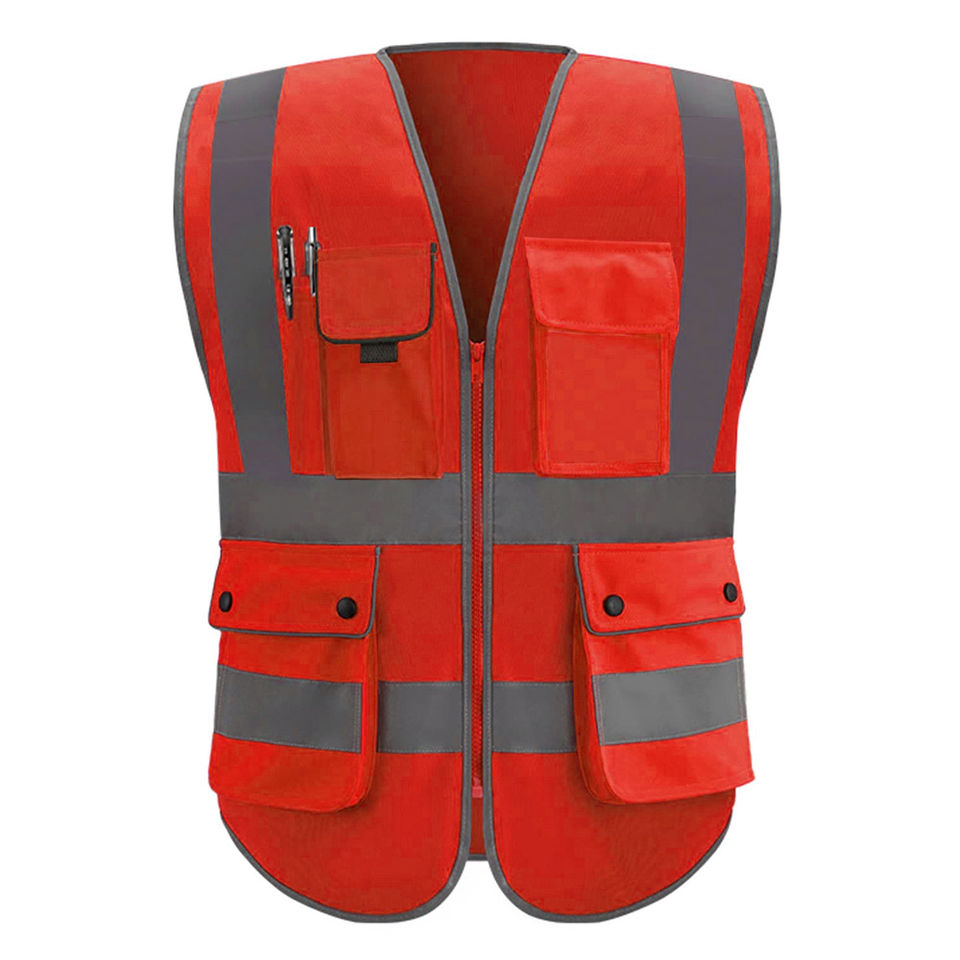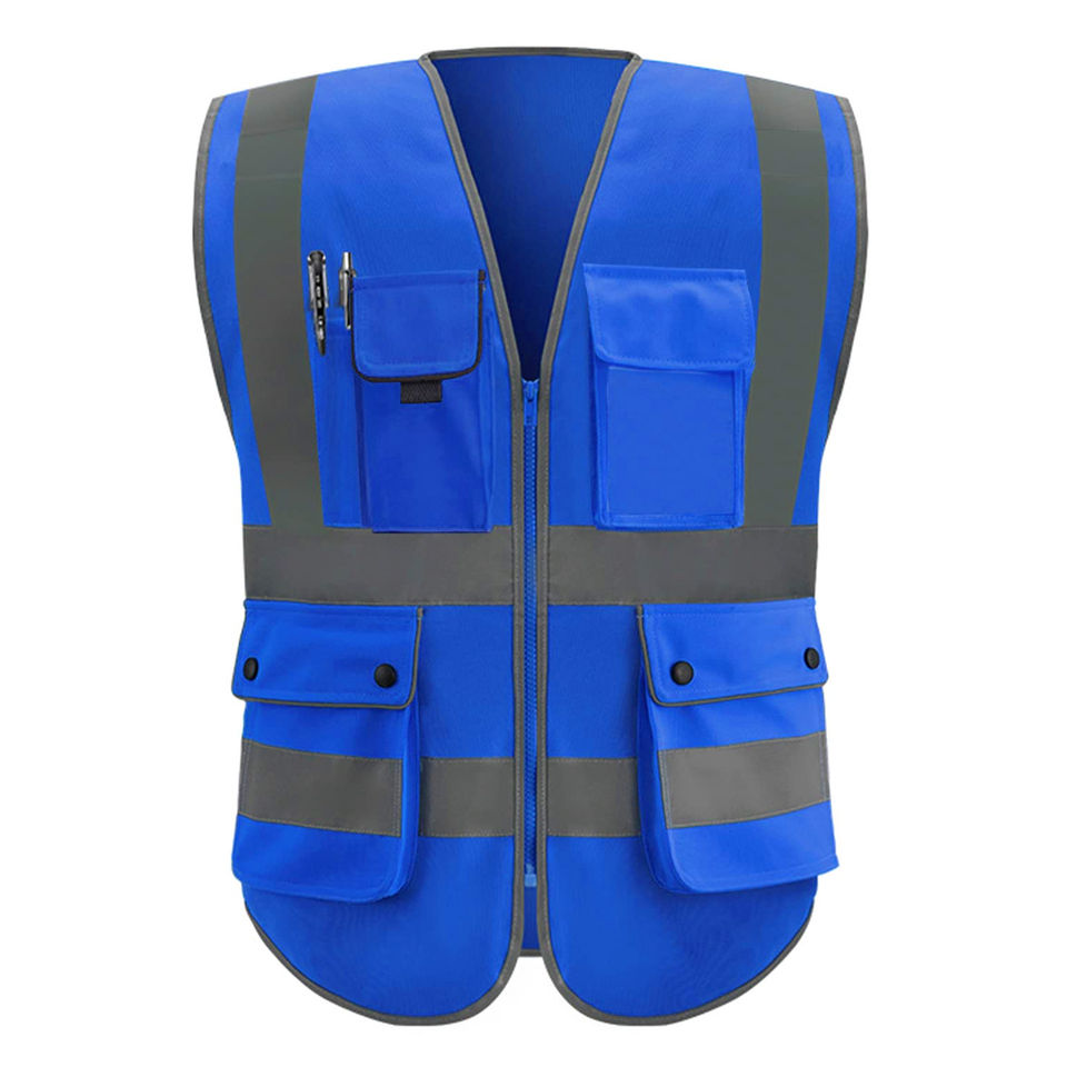 เสื้อกั๊กตาข่ายสีน้ำเงินกันน้ำ ระดับความปลอดภัย ANSI Class 1 EN ISO 20471 Class 2 แบบสองสี สะท้อนแสงมองเห็นได้ชัดเจน มีช่องใส่ไฟ LED
