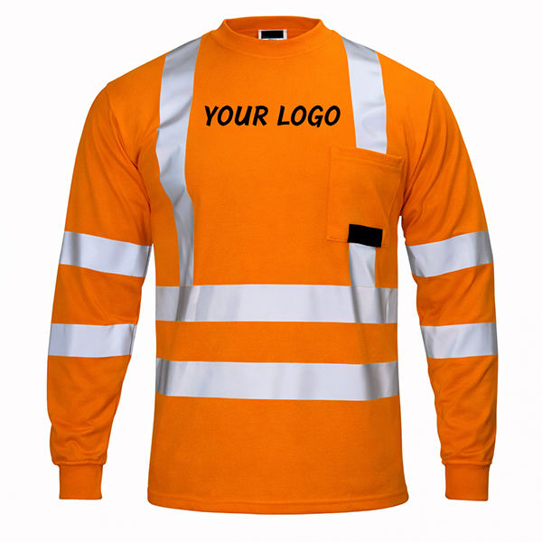 เสื้อยืดนิรภัยแบบสะท้อนแสง แขนยาว สำหรับงานก่อสร้าง วิศวกร พร้อมแถบสะท้อนแสงแบบแยกส่วน พิมพ์ลายด้วยระบบ Thermal Transfer