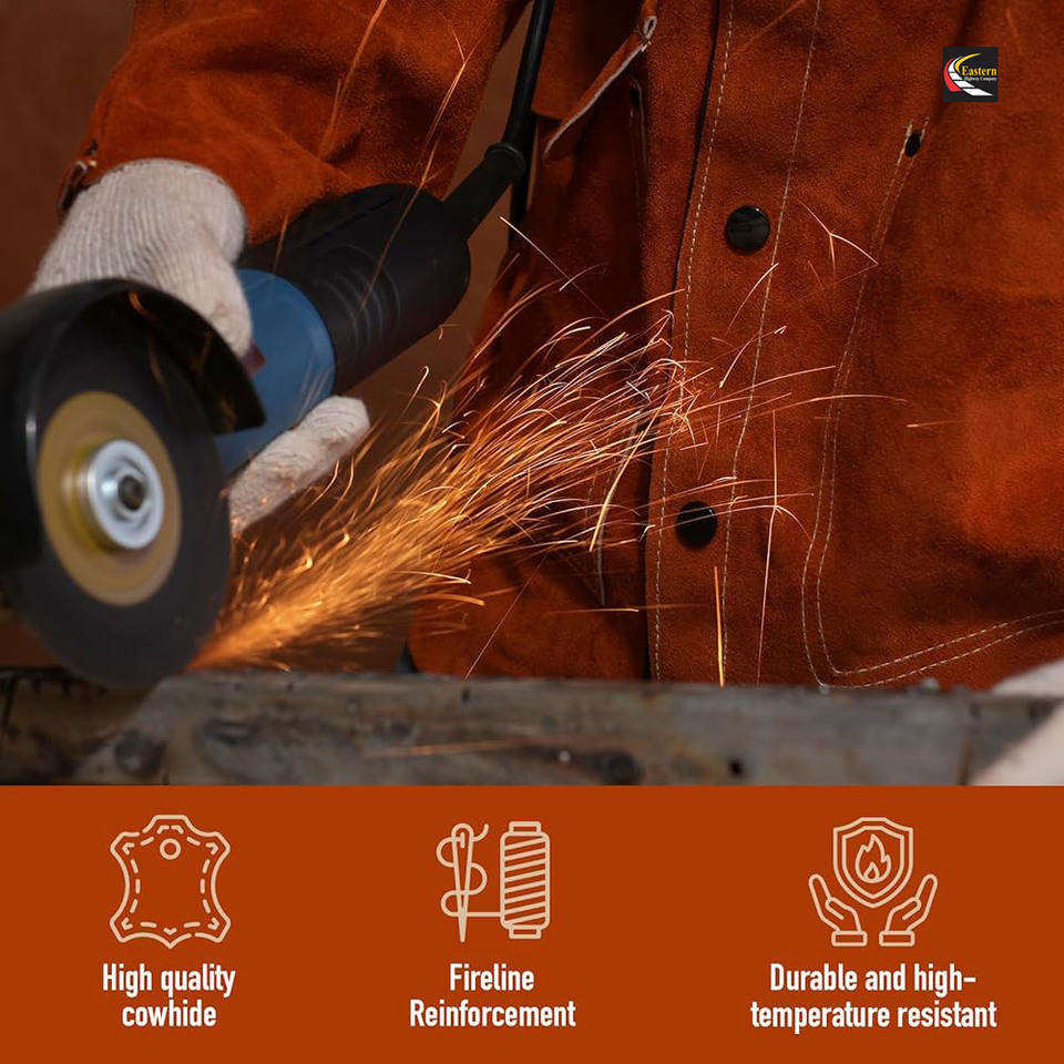 เสื้อแจ็กเก็ตเชื่อมแบบปลอดภัยเสื้อแจ็กเก็ตเชื่อมน้ำหนักเบาทำจากหนัง