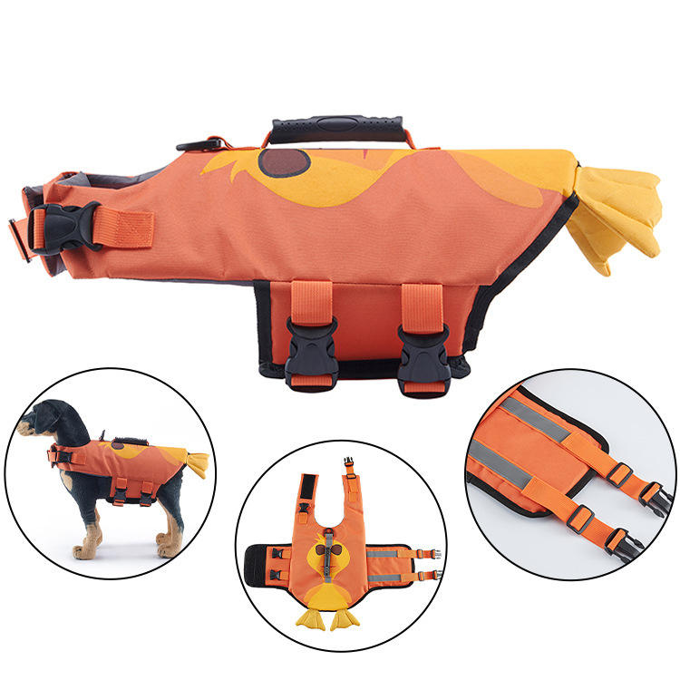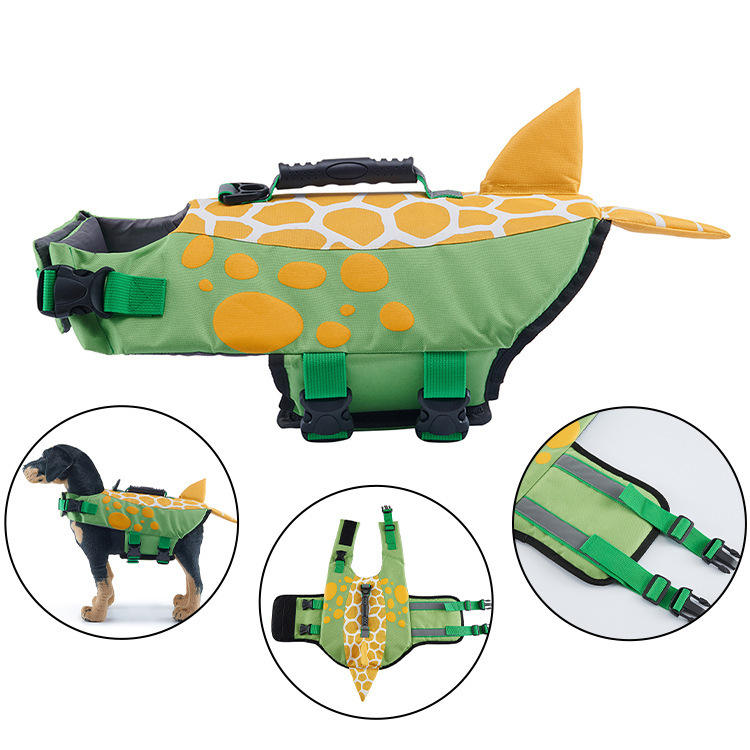 เสื้อชูชีพสุนัขพร้อมแถบสะท้อนแสงหัวเข็มขัดแบบปรับได้สำหรับชุดว่ายน้ำเล่นน้ำป้องกันการจมน้ำ