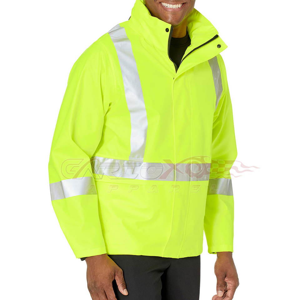 เสื้อแจ็กเก็ตนิรภัยมีฮู้ดปรับได้และแถบสะท้อนแสงสำหรับคนงานบนท้องถนนเสื้อแจ็กเก็ตนิรภัยหลายกระเป๋าสำหรับคนงานบนท้องถนน