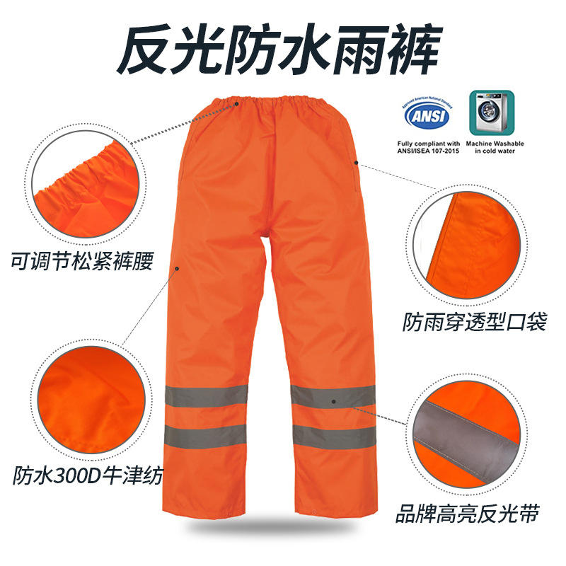 กางเกงนิรภัย กางเกงกันฝนสะท้อนแสง กางเกงกันฝนแถบสะท้อนแสงสูงสำหรับความปลอดภัยทางจราจร สีส้ม SMLXL2XL3XL
