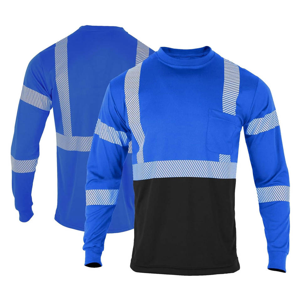 เสื้อนิรภัยแขนสั้นสะท้อนแสงมองเห็นได้ชัดเจนเสื้อยืดระบายอากาศสำหรับทำงานโกดังก่อสร้างชั้น3