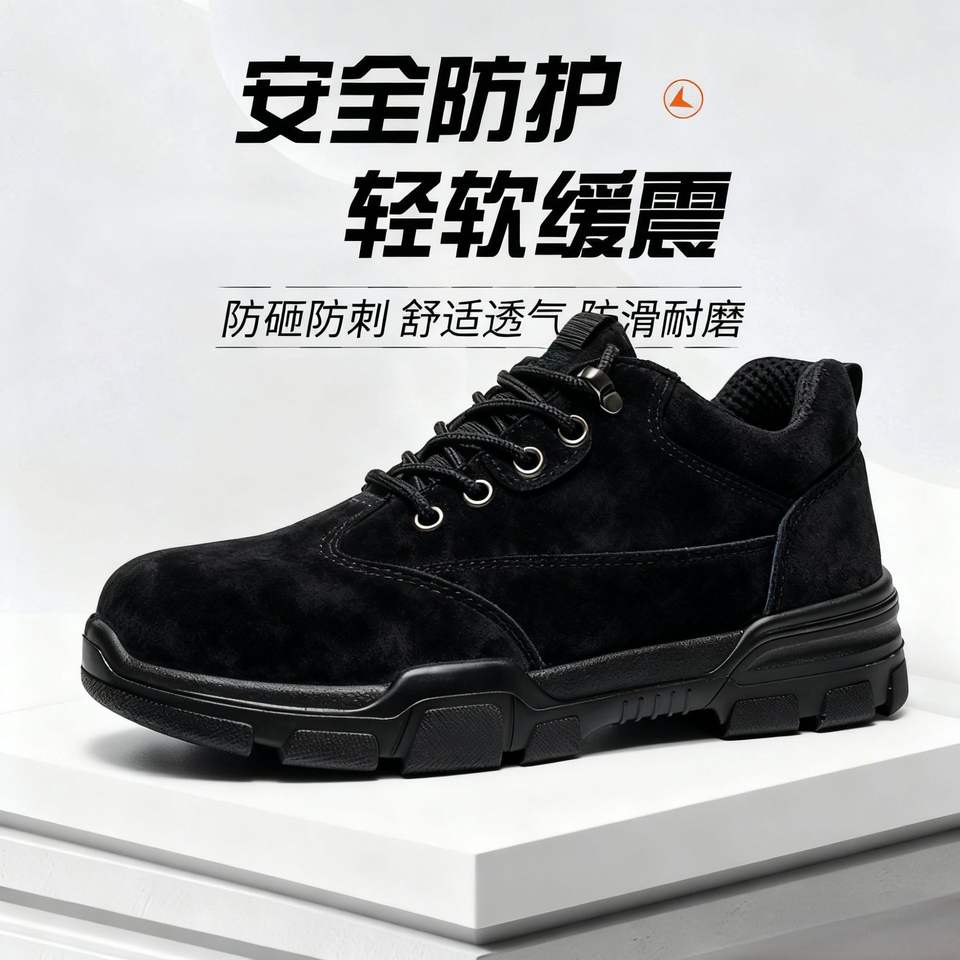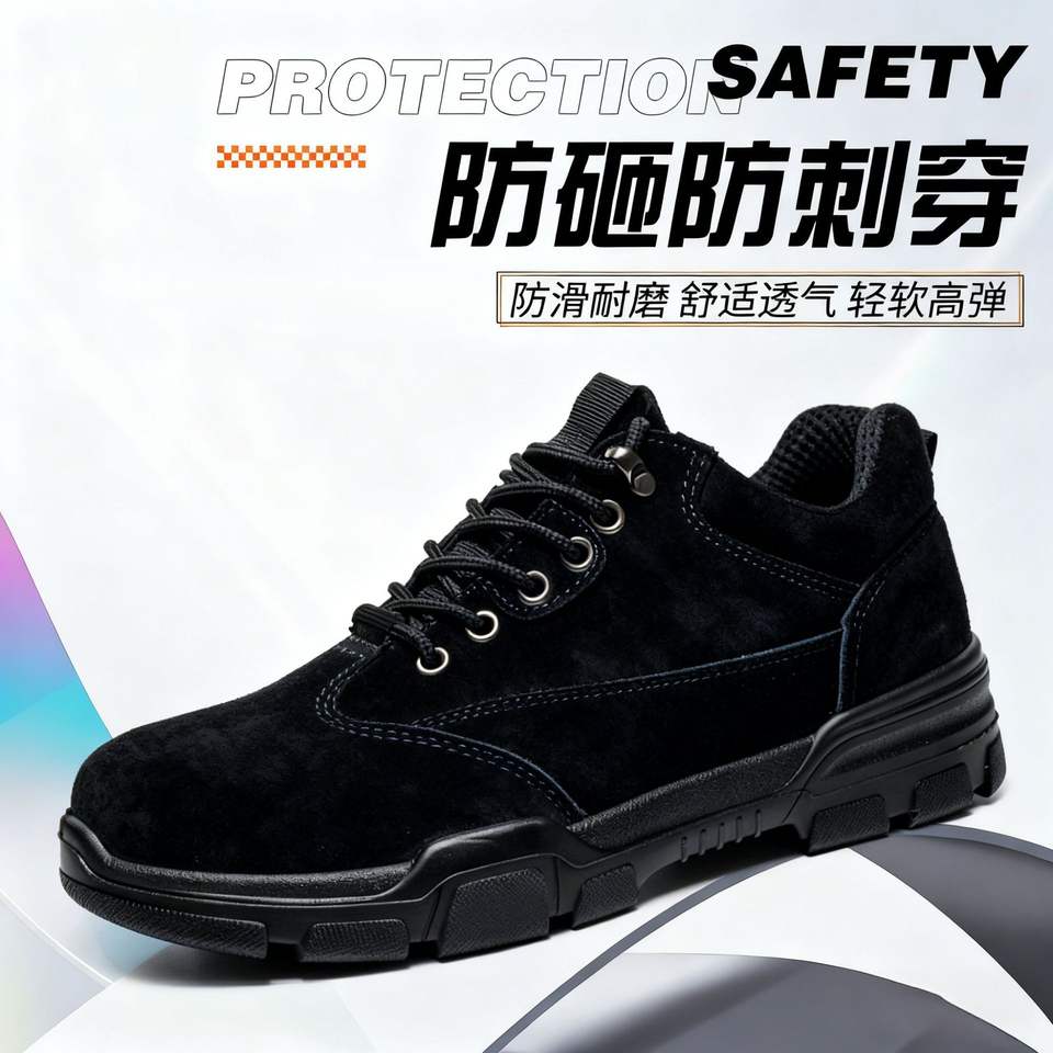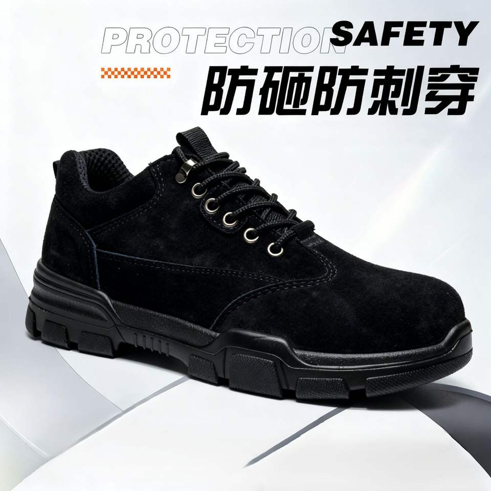 รองเท้าเซฟตี้หัวเหล็กแบบหุ้มส้นต่ำ สีดำ สำหรับผู้ชาย ป้องกันแรงกระแทก ป้องกันการเจาะทะลุ เหมาะสำหรับงานก่อสร้าง