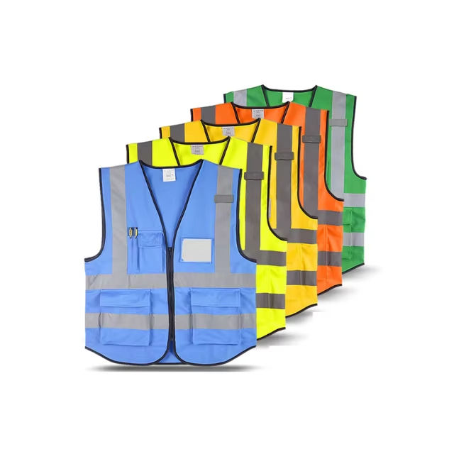 เสื้อกั๊กนิรภัยลายทางสะท้อนแสง, เสื้อกั๊กใส่ทำงาน Hi VIS สูงสามารถมองเห็นได้พร้อมกระเป๋า