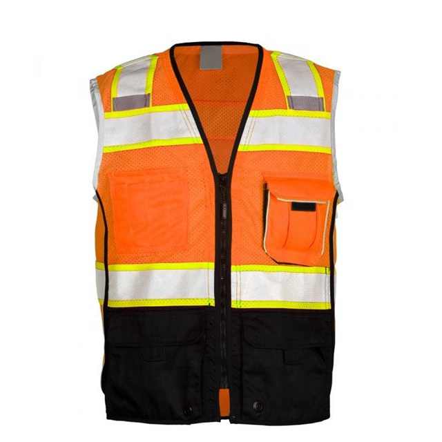 เสื้อกั๊กนิรภัย Hi Vis Work,เสื้อกั๊กสะท้อนแสงมองเห็นได้ชัดเจนมีกระเป๋ายามรักษาความปลอดภัย