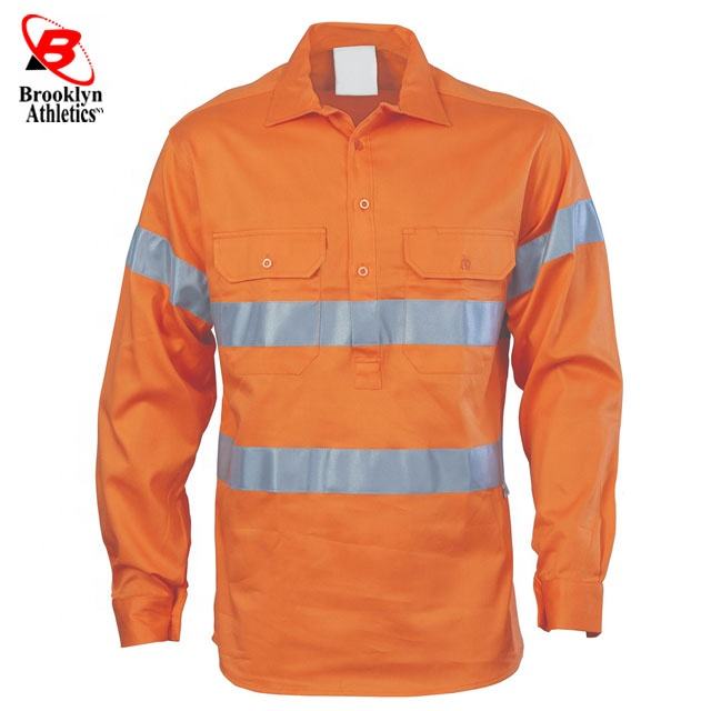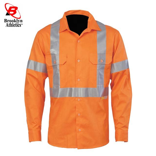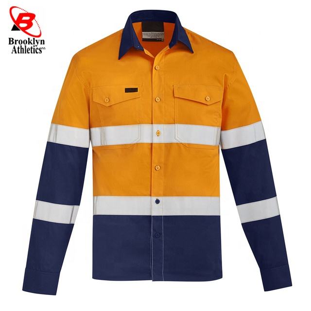 ความปลอดภัยการประชุมเชิงปฏิบัติการเสื้อผู้ชายขายส่งผ้าฝ้าย100% การมองเห็นสูงแขนยาวเสื้อสำหรับผู้ชาย