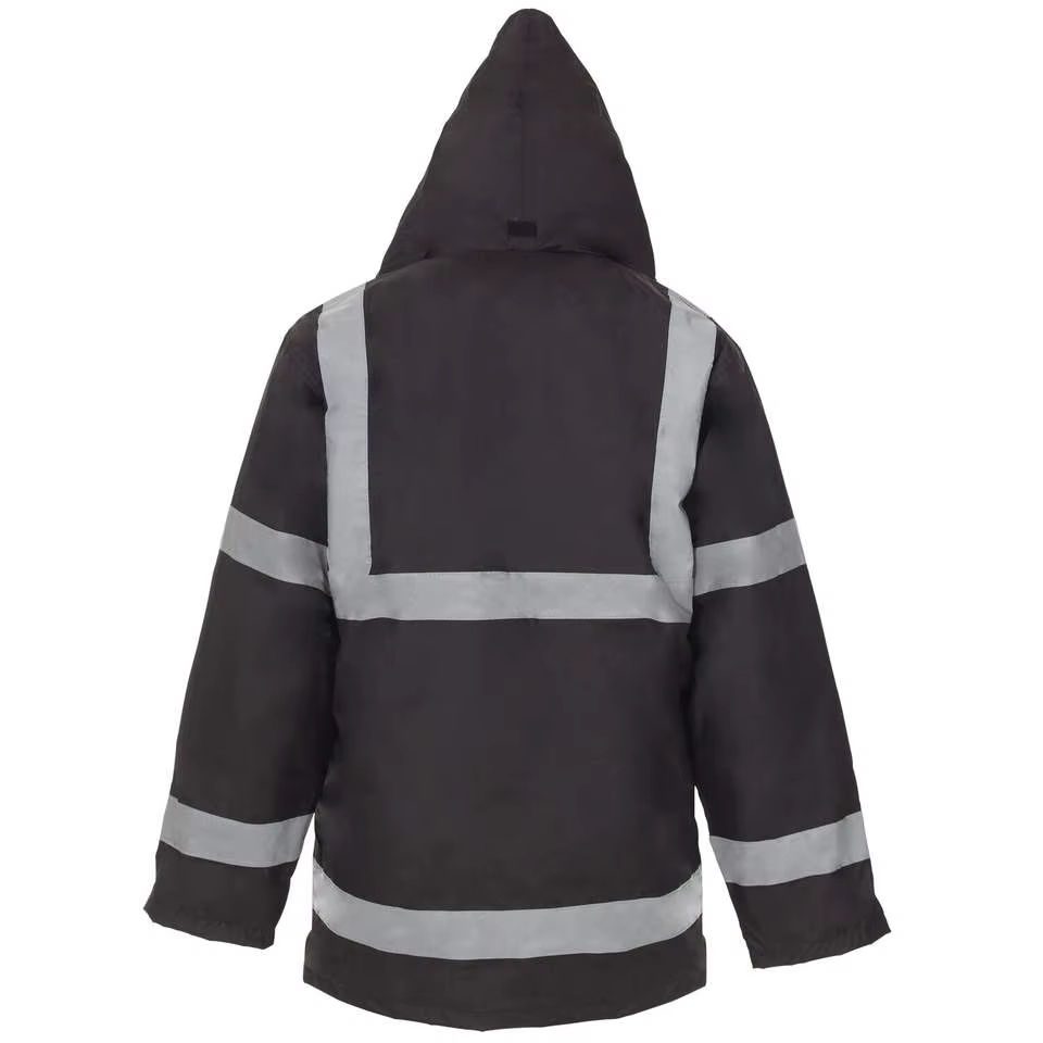 เสื้อฮู้ดสะท้อนแสงความปลอดภัยสูงสำหรับผู้ชาย เสื้อแจ็คเก็ตยูนิฟอร์มงานรักษาความปลอดภัยแบบให้ความอบอุ่น