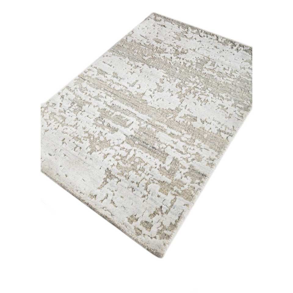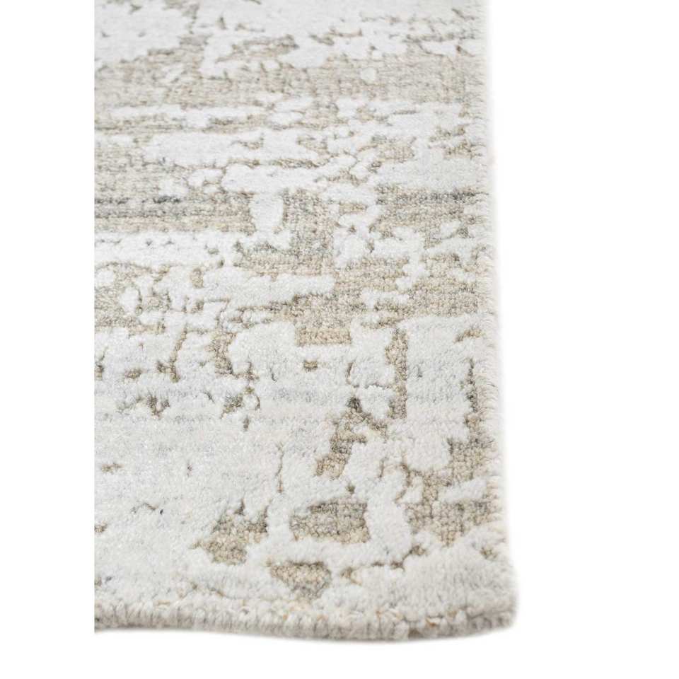 พรมทำมือจากขนสัตว์และใยวิสโคส สีเบจและสีน้ำตาล รุ่น HJWV-7001 รูปทรงสี่เหลี่ยมผืนผ้า ลายเส้นนามธรรม สำหรับใช้ในห้องนั่งเล่นที่บ้าน