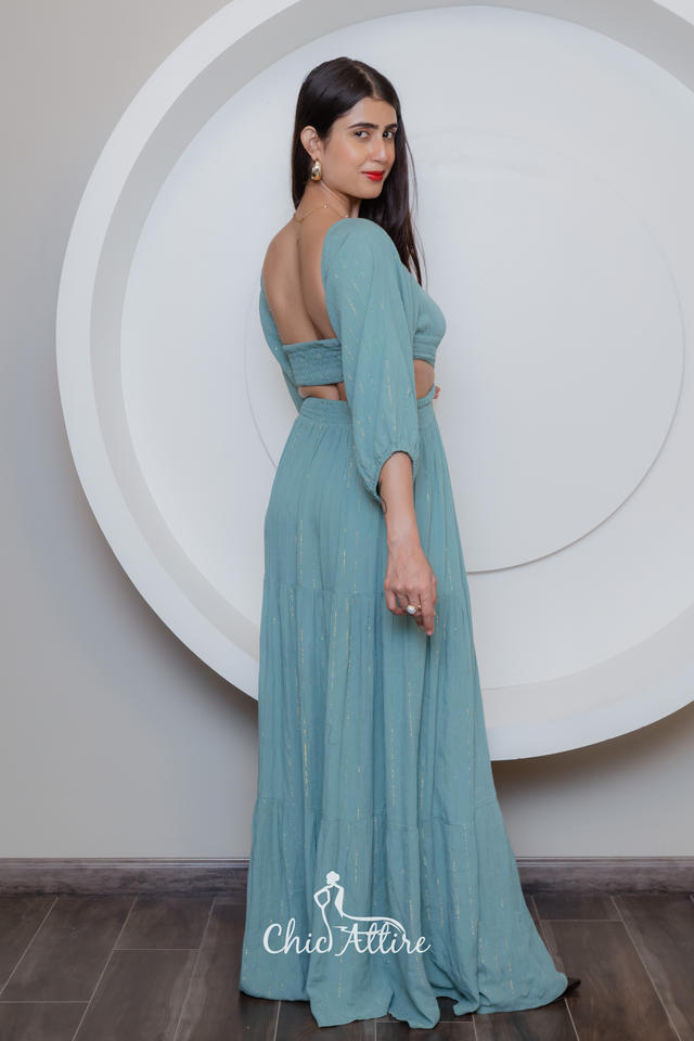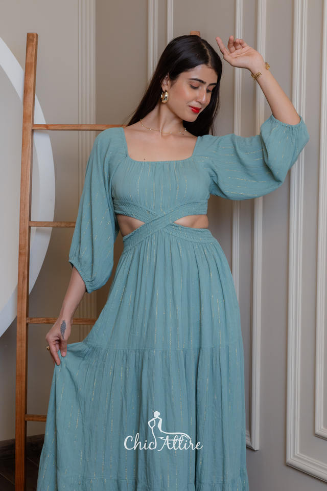ชุดเดรสยาวสีเขียวเข้มพร้อมรายละเอียดแวววาวดีไซน์ดิจิตอลล่าสุดสำหรับกิจกรรมตอนเย็นโอกาสพิเศษ