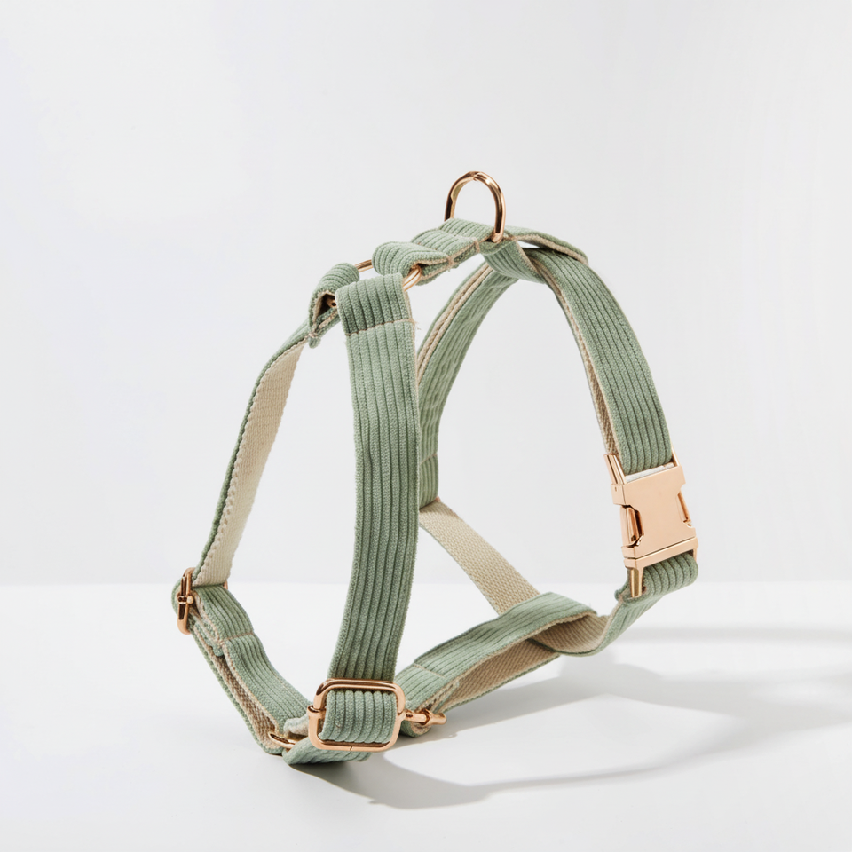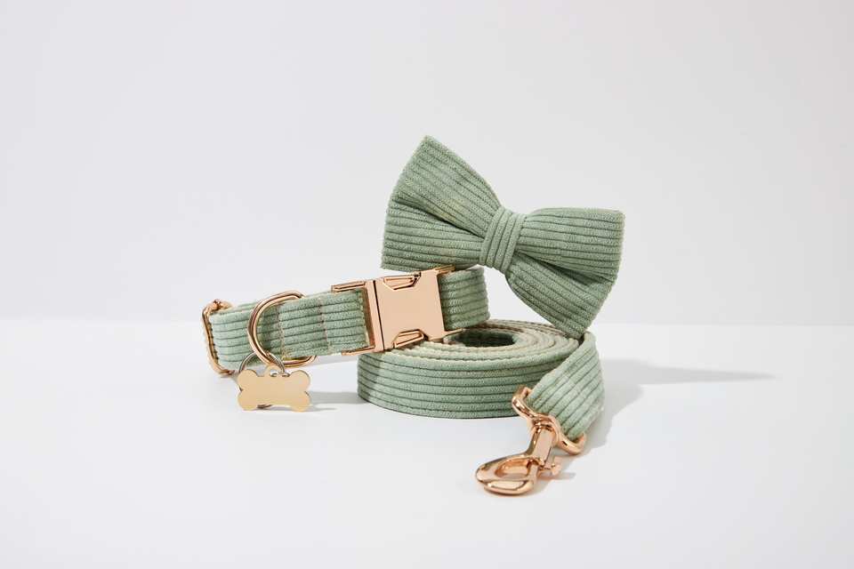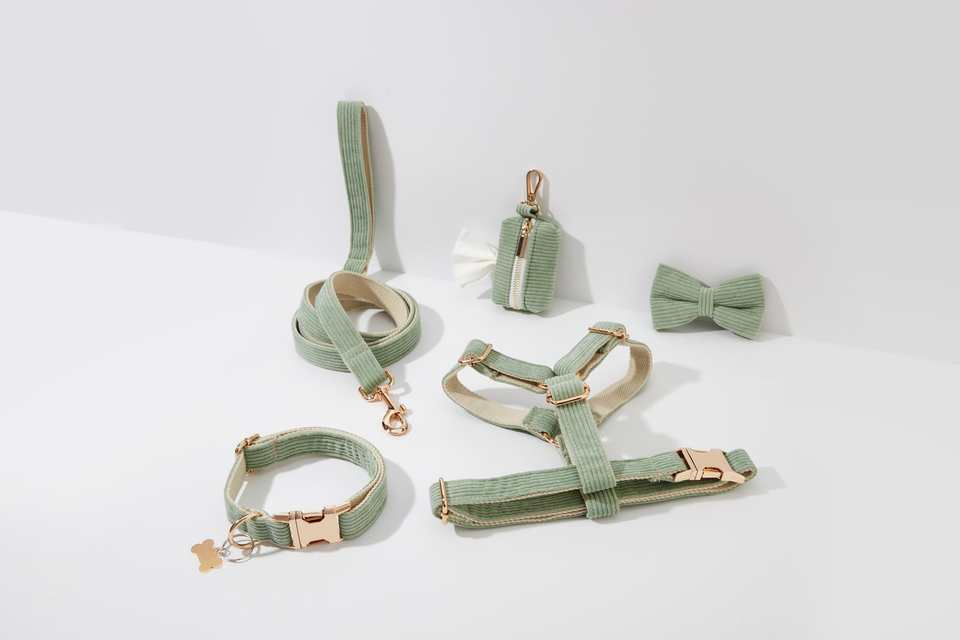 สายจูงสุนัขผ้าลูกฟูกสีเขียวปัญญาชนสำหรับสุนัขสาวชุดสายรัดปลอกคอและสายจูงสุนัข