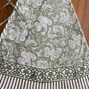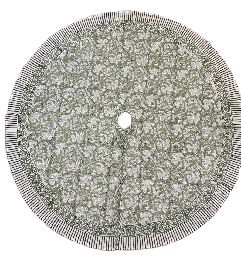 ขอบกระโปรงผ้าฝ้ายแท้พิมพ์ลายดอกไม้อินเดียเสจสีเขียว100% ขอบกระโปรงต้นคริสต์มาสสำหรับฟาร์มปาร์ตี้คริสต์มาส