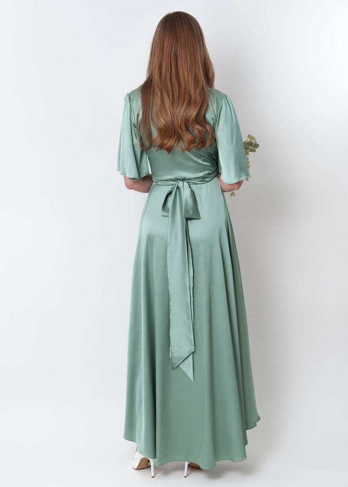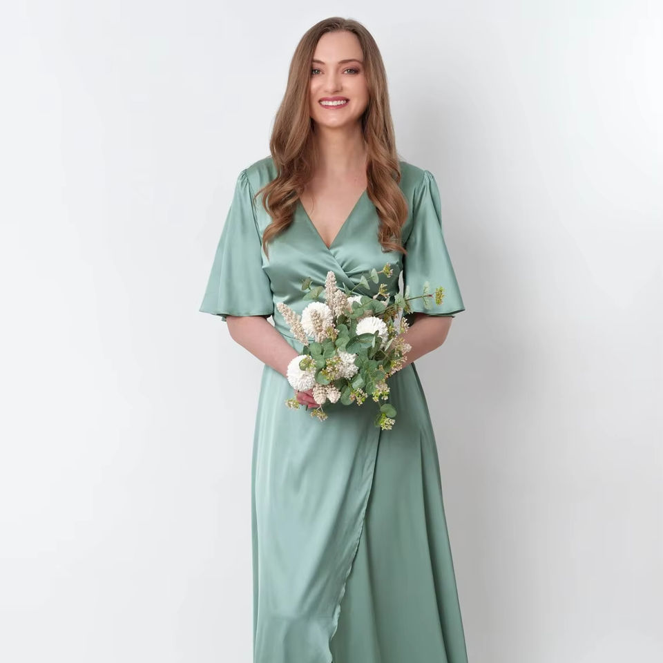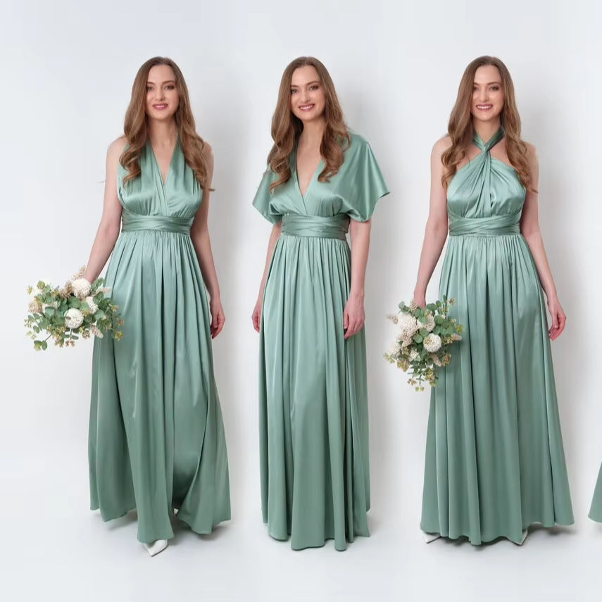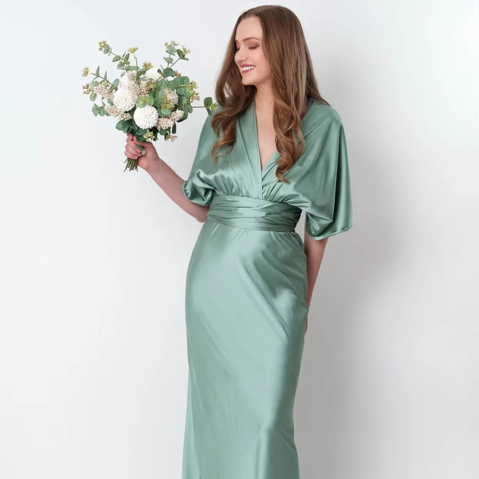 ชุดผ้าไหมสีเขียวเสจ, ชุดผ้าไหม, ชุดเดรสผูกเอว, ชุดเพื่อนเจ้าสาว, ชุดแต่งงานแขก, ชุดผู้หญิง, ชุดราตรี, ชุดเดรสยาว