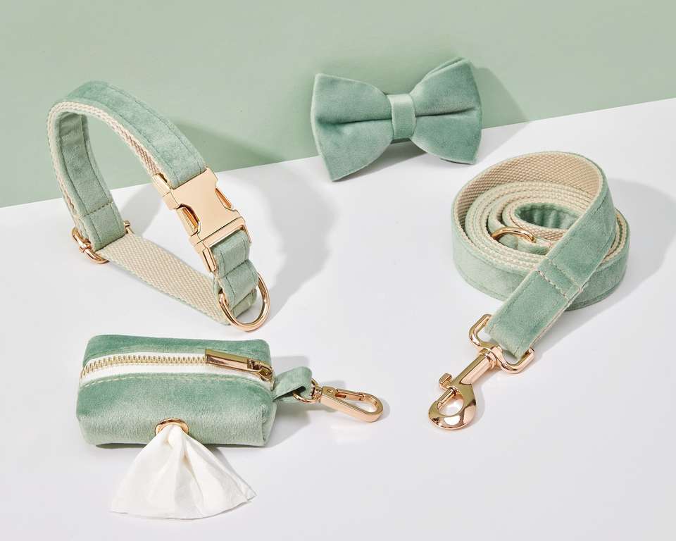 Sagegreen Veet Dog And Leash Set, Personalize Step In Puppy Harness+Collar+Bowtie+Poo Bag Holder, No Pull Wedding Harness Bundle