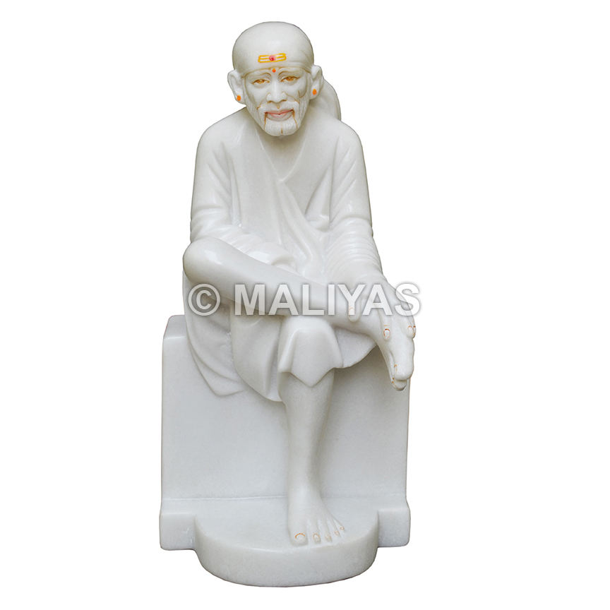 ไสยบาบา พระพุทธรูปสำหรับวัด | รูปปั้นพระศรีศิริไสบาบาหินอ่อนสีขาวในท่านั่ง สำหรับวัดและบ้าน - MALIYAS