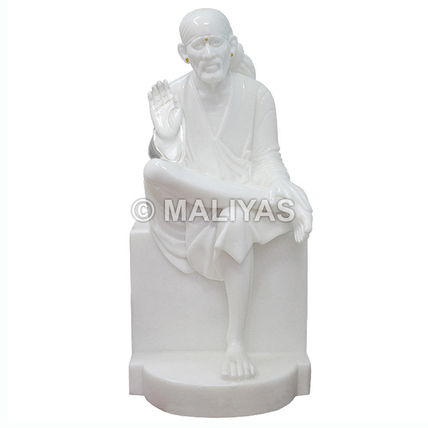 รูปปั้นหินอ่อนพระศรีบาบาในท่านั่ง | รูปปั้นพระชิรดี ไซบาบา แกะสลักด้วยมือจากหินอ่อนสีขาว สำหรับวัดและบ้าน - MALIYAS