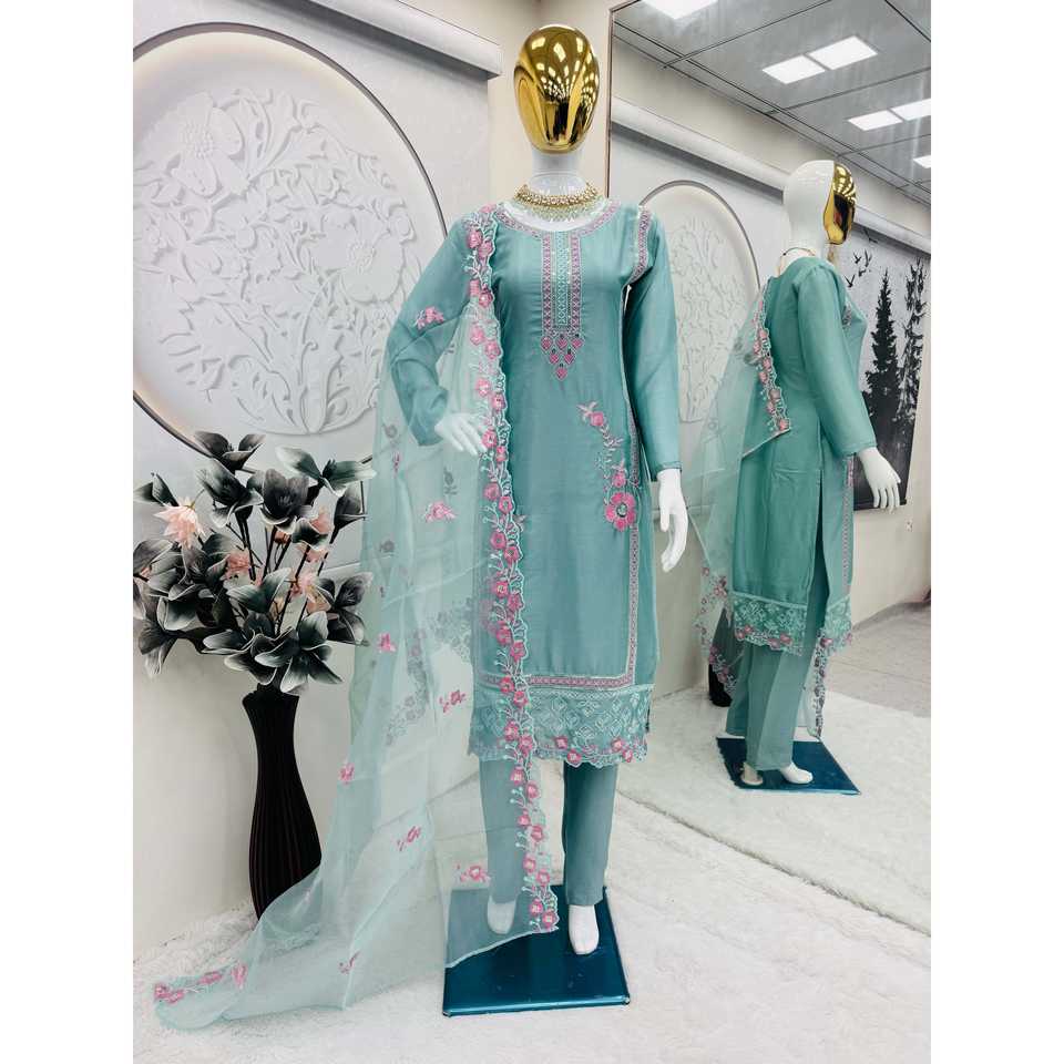 ชุดสูทออกงานสีน้ำเงินสำหรับผู้หญิง ไซส์ M 800 กรัม งานปักด้วยด้ายและเลื่อม ออกแบบโดย Sai Creation