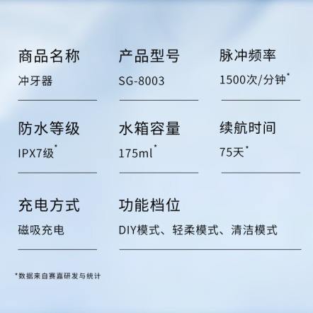 Saijia เครื่องทำความสะอาดฟันแบบพกพา, IPX7 SG-8003กันน้ำชาร์จไร้สายได้เครื่องล้างทำความสะอาดฟัน