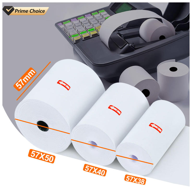 ขนาด57*25 100 MmX30มม. 57/40/12แฟกซ์58มม. x 30มม. 48-80Gsm กระดาษความร้อนสีขาวสว่าง50Gsm