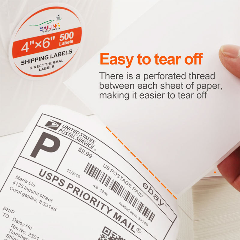 Sailing ฉลากกาวม้วน6X4 100X150มม. ฉลาก1000แบบใช้ความร้อนพร้อม100X150เจาะรู