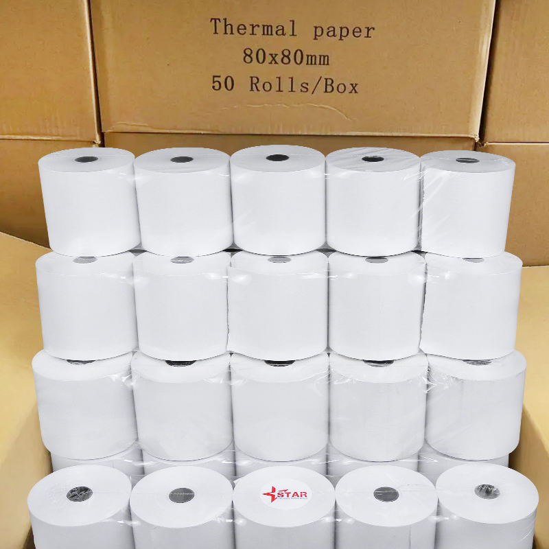ม้วนกระดาษความร้อน80x80มม. สำหรับเครื่อง POS สำหรับเครื่องลงทะเบียนเงินสดและเทอร์มินัลบัตร