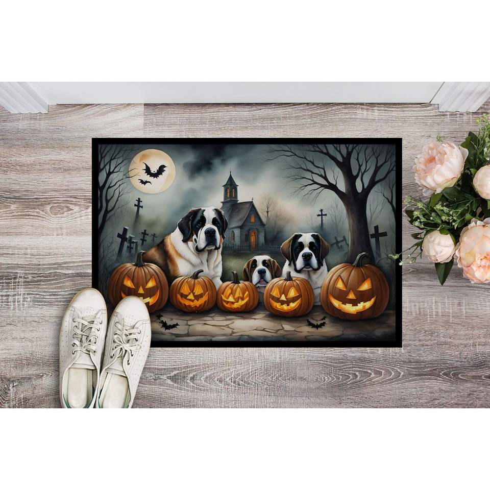 Saint Bernard Spooky Halloween Doormat Non-Slip Washable Low Pile 24H X 36W Indoor Outdoor Entryway Rug for Front Door