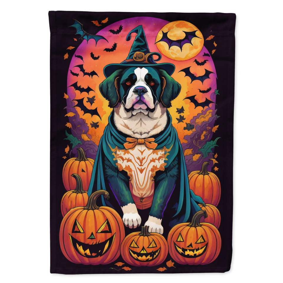 Saint Bernard witchy ธงสวนฮาโลวีนหลากสีสำหรับตกแต่งกล่องจดหมายและลานแบนเนอร์สำหรับงานศิลปะในสนามและสนามหญ้าสำหรับเตียงดอกไม้