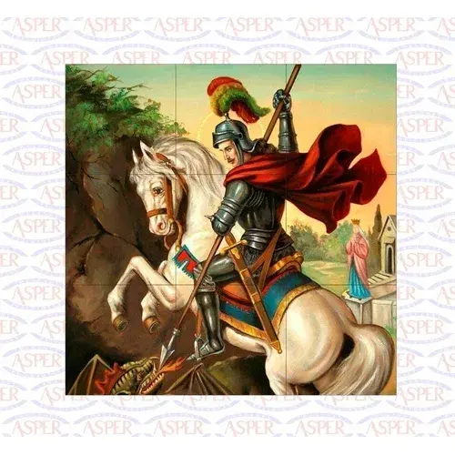 ภาพจิตรกรรมฝาผนังกระเบื้องเซรามิก9ชิ้นนักบุญจอร์จและมังกร24 "x 24" ตกแต่งผนังสำหรับ backsplash หรือตกแต่งบ้าน