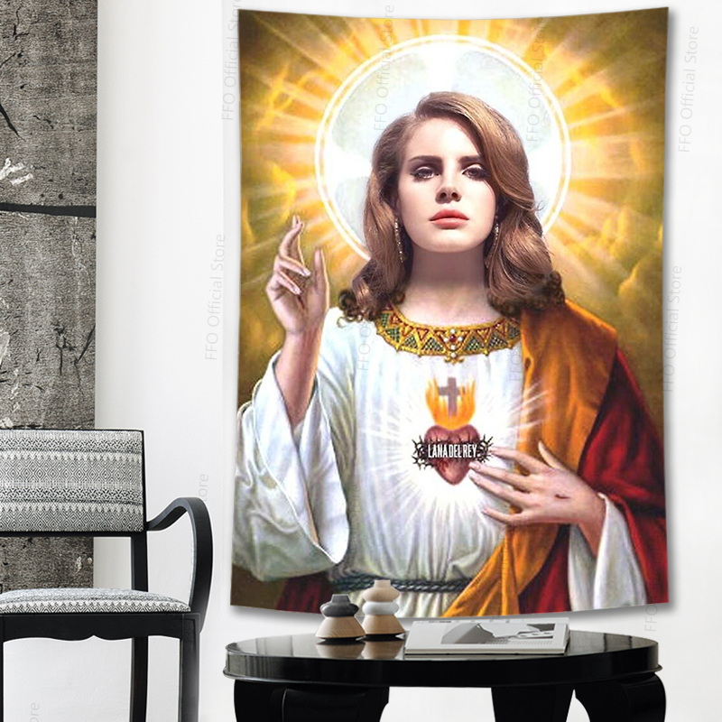 ผ้าทอตกแต่งผนังสไตล์เซนต์ลานา เดล เรย์ สำหรับตกแต่งห้องนอน พรมพิมพ์ลายสำหรับหอพัก ผ้าทอตกแต่งผนังลายทางศาสนา