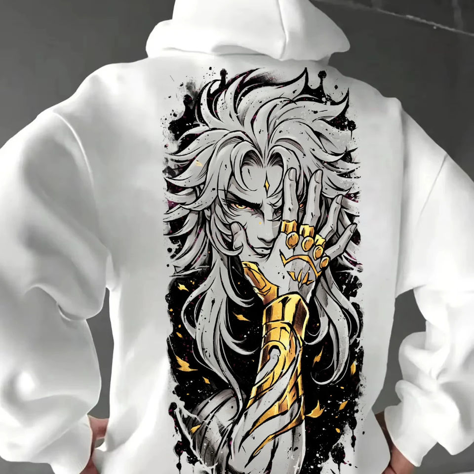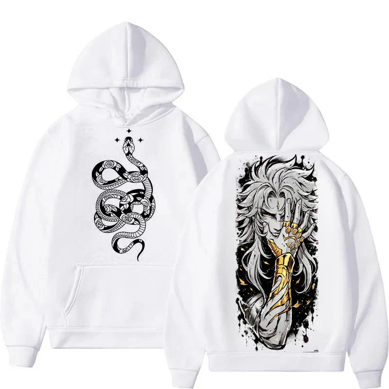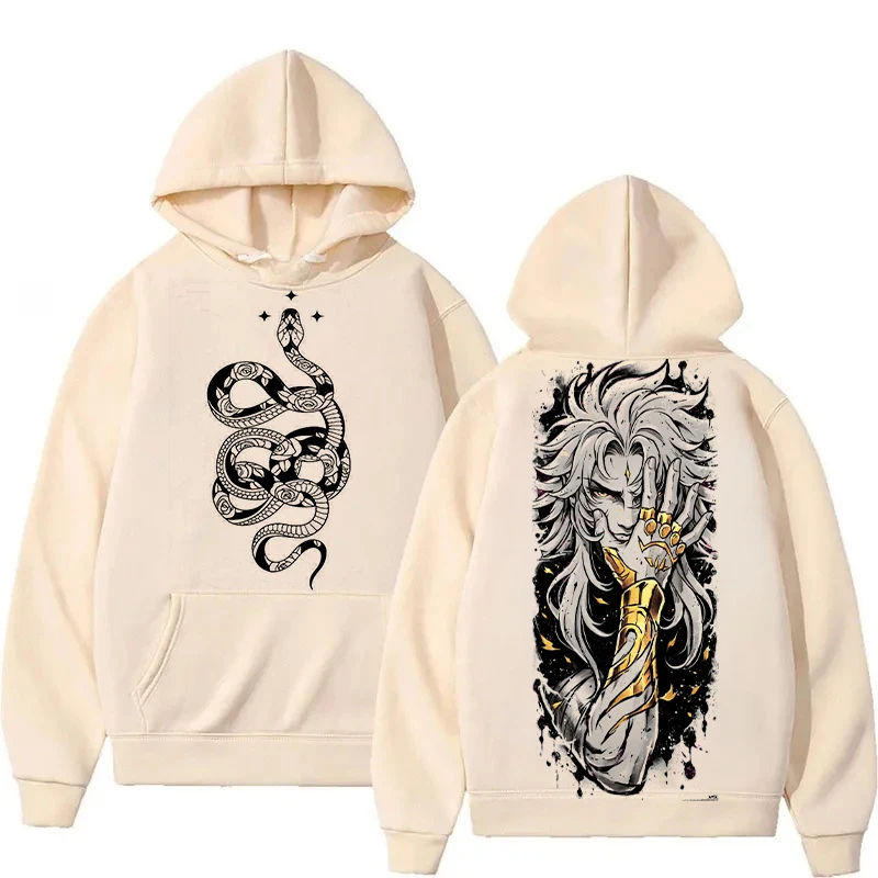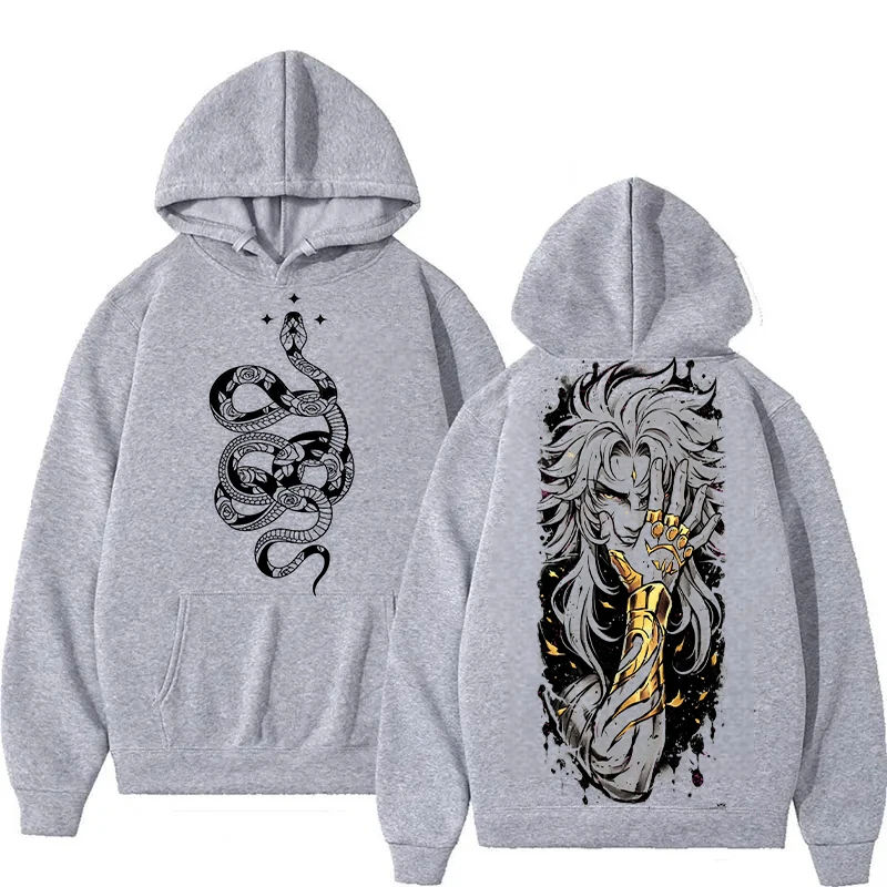 Saint Seiya เสื้อโค้ทมีฮู้ดคู่ลายที่นั่งงู, เสื้อโค้ทพิมพ์ลายสองด้านสำหรับฤดูใบไม้ร่วงฤดูหนาว Y2k ฮาราจูกุขนาดใหญ่