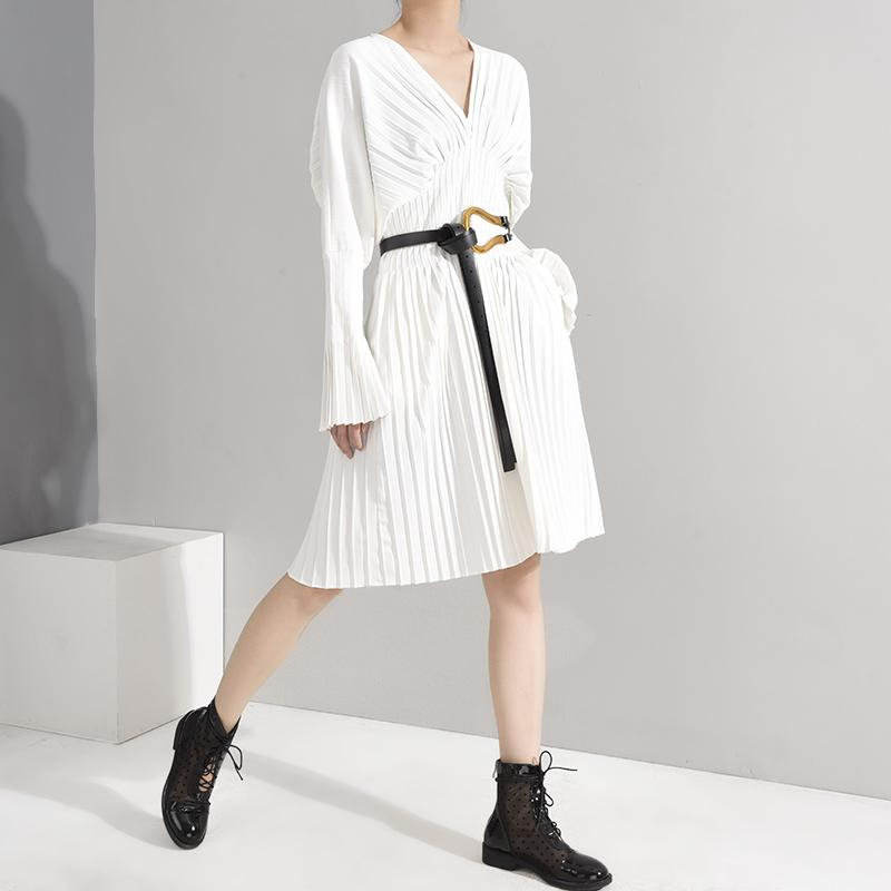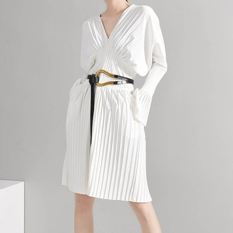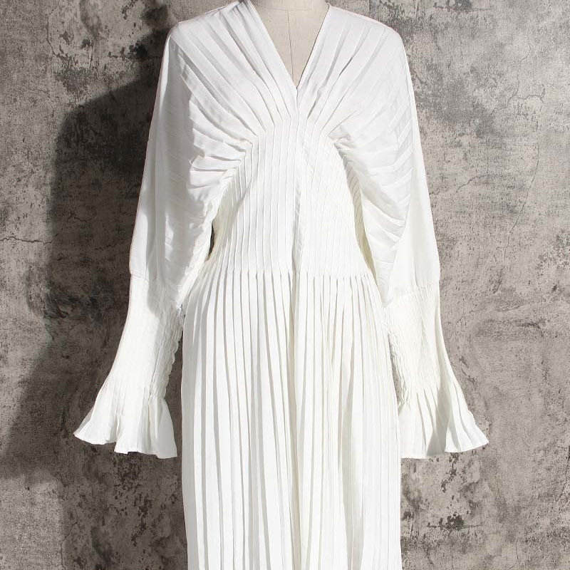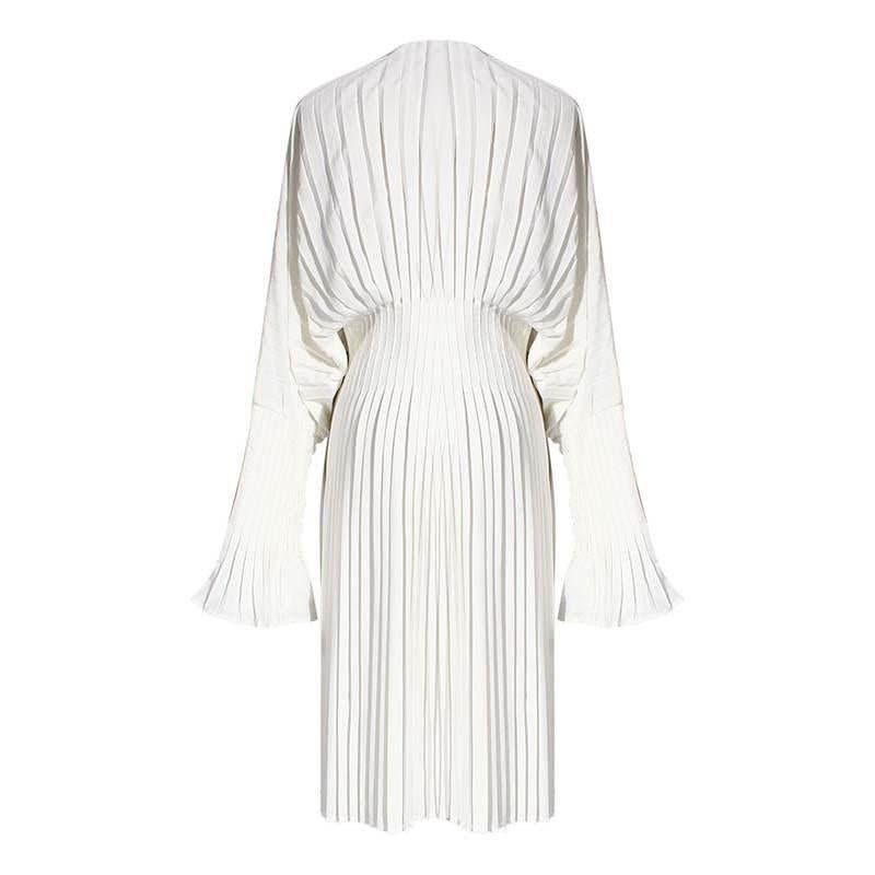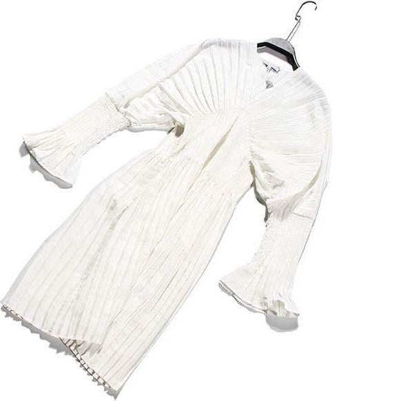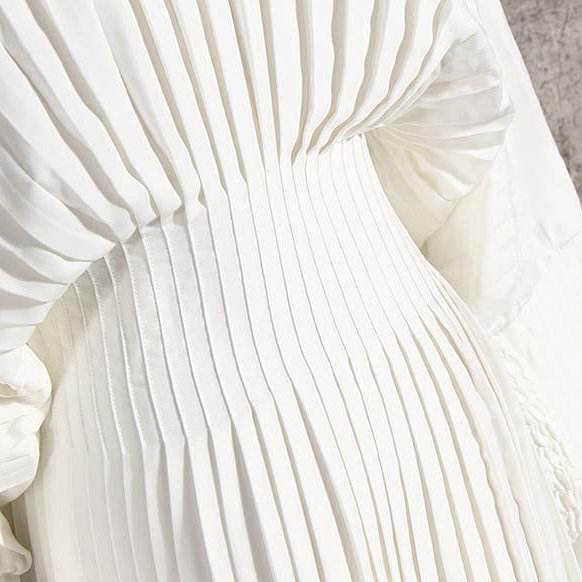 Sakiya White Pleated Long Sleeve Shirt Dress for Women Elegant Casual & Party Style Plus-Size & XS Day & Sweet Occasion