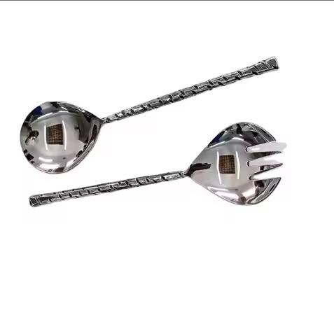 ชุดอุปกรณ์เสิร์ฟสลัดแบบด้าน ดีไซน์ด้ามจับลายเมนา สำหรับร้านอาหาร โรงแรม งานแต่งงาน ตกแต่งโต๊ะอาหาร