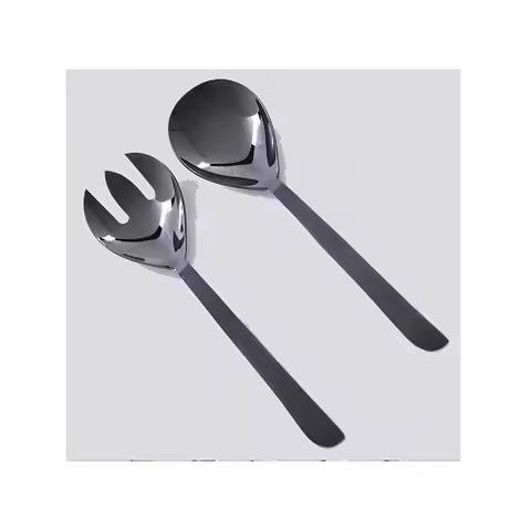 ชุดอุปกรณ์เสิร์ฟสลัด ส้อม ชุดอุปกรณ์เสิร์ฟสลัด สแตนเลส พร้อมช้อนด้ามจับสีดำ