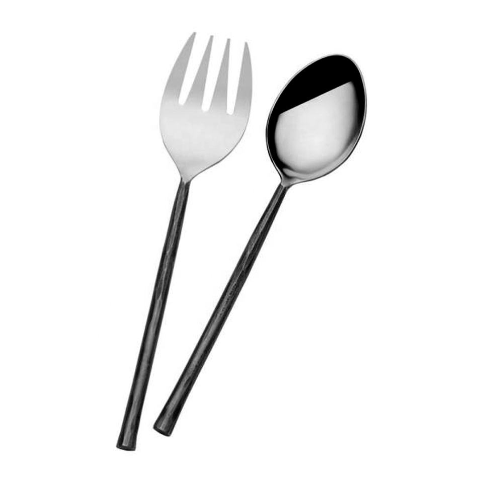 ชุดเสิร์ฟสลัดบาร์,ชุดเสิร์ฟสลัดด้ามดัดสีดำเซิร์ฟเวอร์สลัดตกแต่งโลหะสแตนเลส