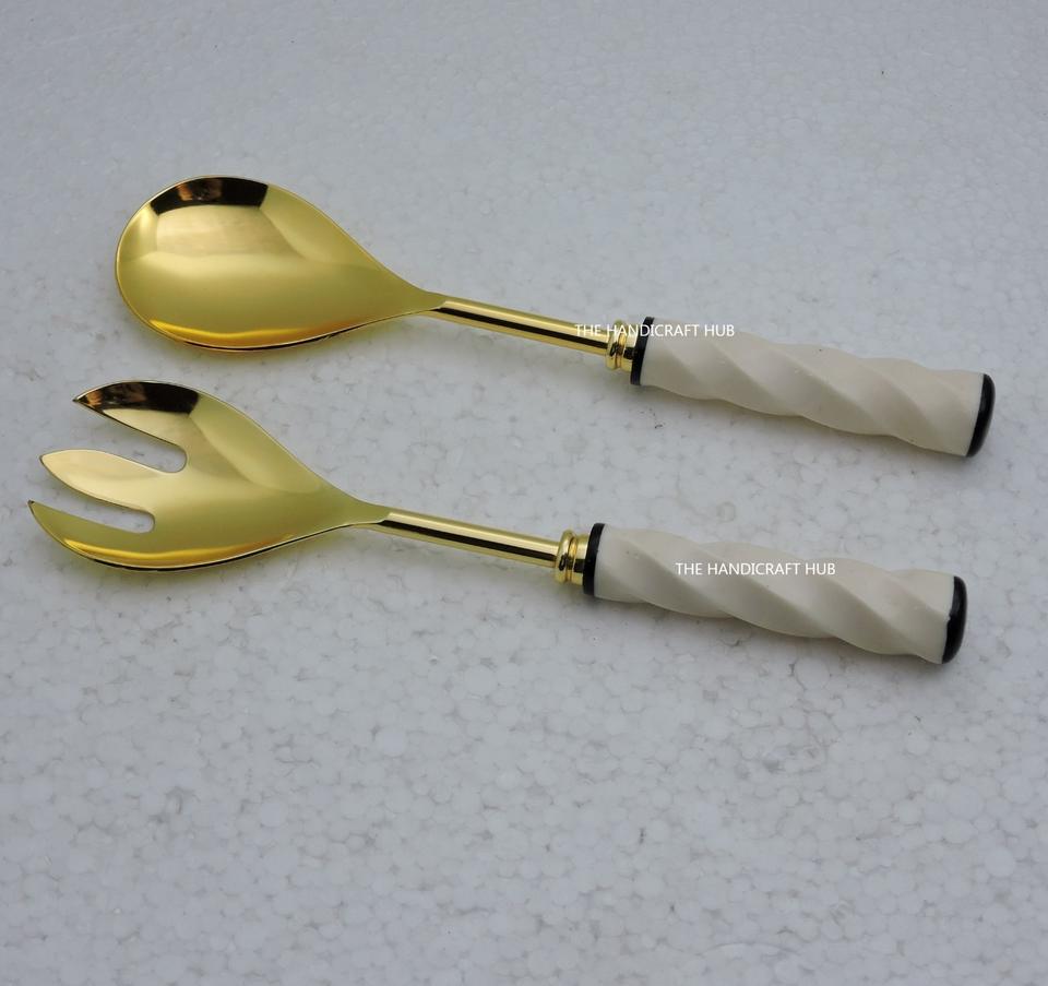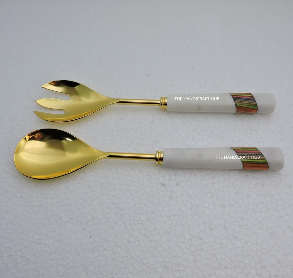 ชุดช้อนเสิร์ฟสลัด รุ่นหินอ่อนเคลือบลายเคลือบสี และสแตนเลสชุบทองแดง ช้อนเสิร์ฟสลัดขนาดใหญ่