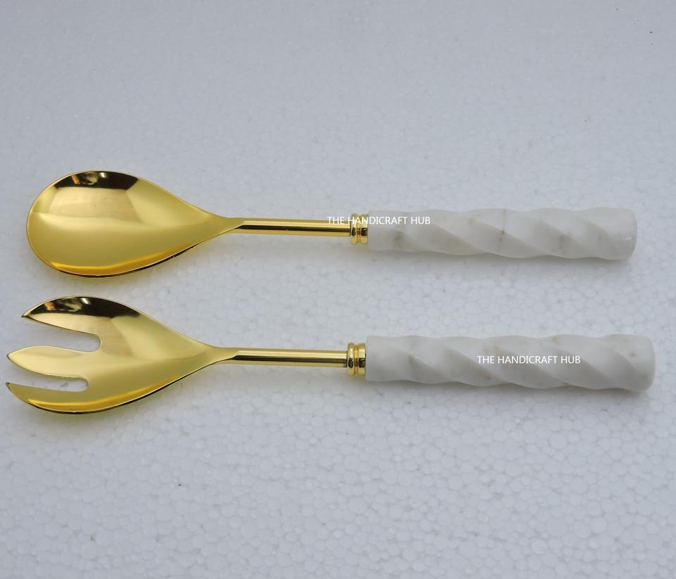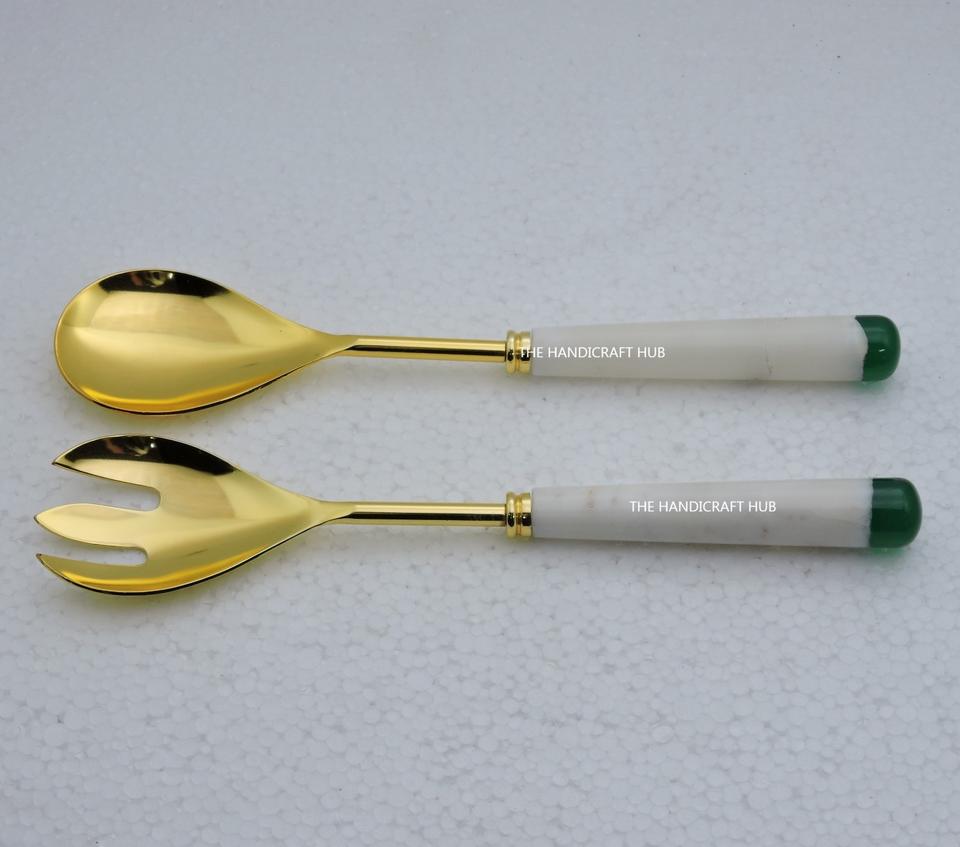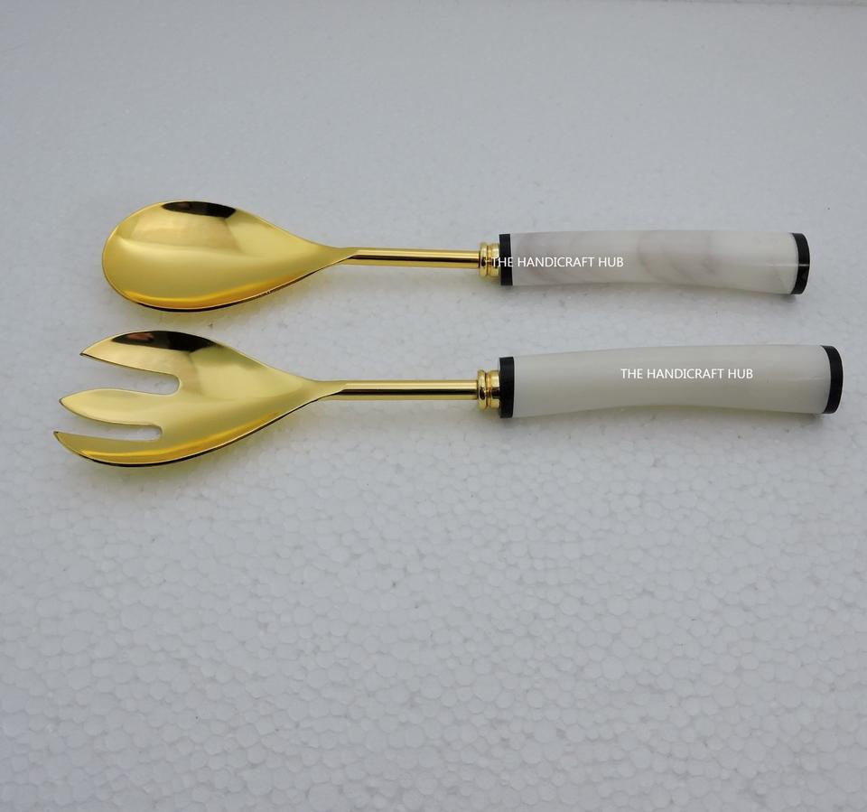ที่ตักสลัดดีไซน์ทันสมัย ด้ามจับทำจากหินและเรซิ่น พร้อมที่ตักสลัดสแตนเลสชุบเงิน ใช้ในครัว