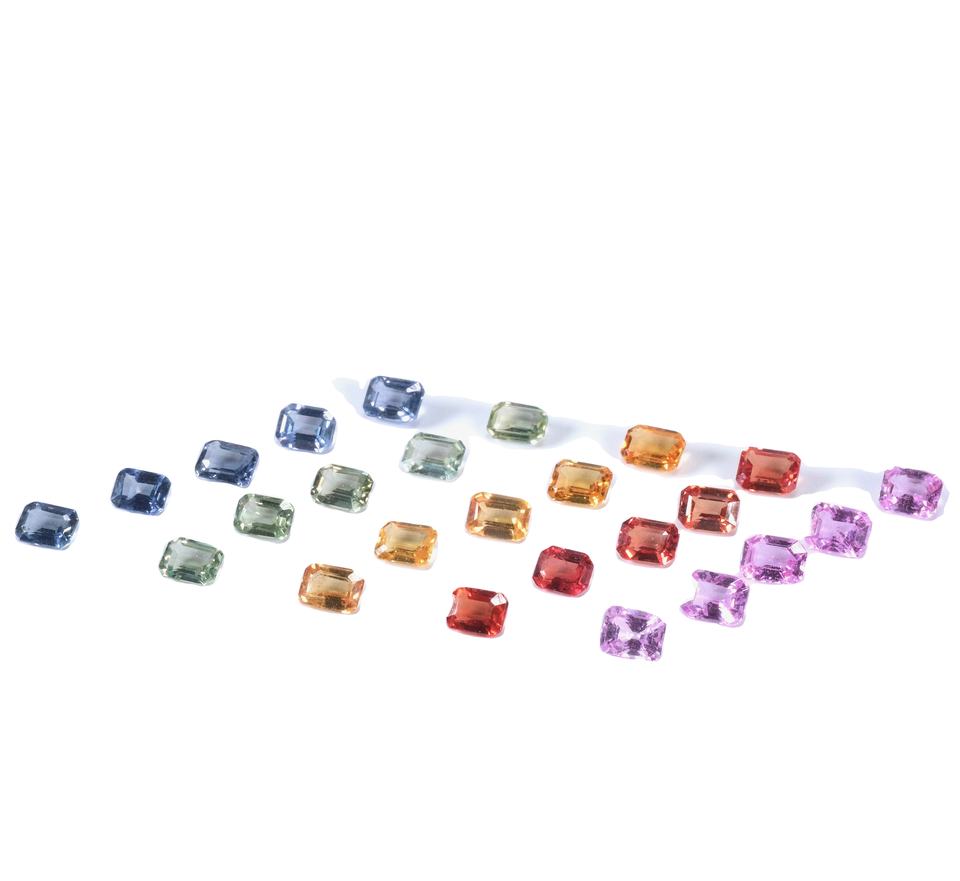 พลอยแซฟไฟร์ธรรมชาติทรงแปดเหลี่ยมเจียระไนขนาด 4x3 มม. หลายสี ได้รับการรับรองจาก IGI เกรด AAA สำหรับทำเครื่องประดับ ราคาขายส่งถูก