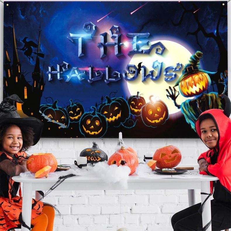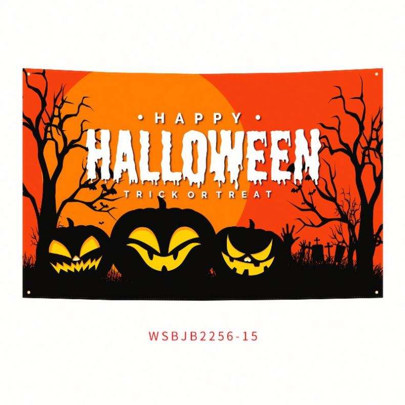 ขายธงแบนเนอร์แนวตั้งพิมพ์ลายดิจิตอลลายฟักทองฮาโลวีนน่ารัก ราคาถูก สำหรับห้องนั่งเล่น