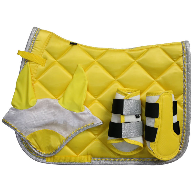 ชุดอุปกรณ์ขี่ม้า ผลิตภัณฑ์สำหรับกีฬาขี่ม้า ชุดแผ่นรองอานม้าแบบเข้าชุด ผ้าตาข่ายระบายอากาศ ผ้าซาติน ผ้าคลุมม้า