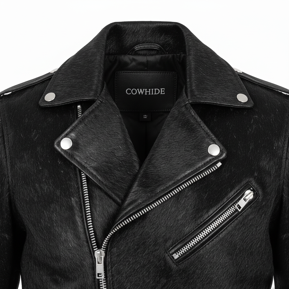 เสื้อแจ็คเก็ตหนังวัวแท้สีดำล้วนสั่งตัดได้สำหรับผู้ชายและผู้หญิง คุณภาพสูงระดับพรีเมียม ผลิตแบบ ODM จำหน่ายทั้งชุด