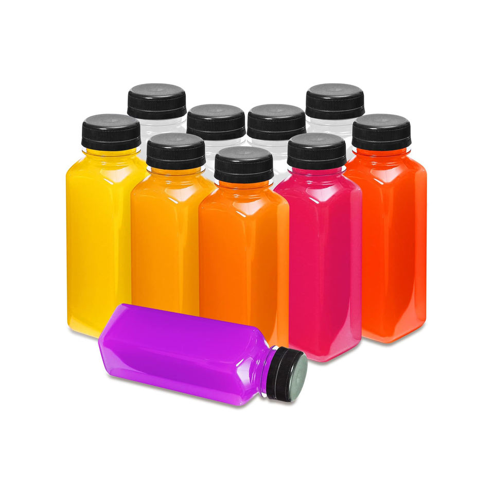 ขวดน้ำผลไม้พร้อมฝาพลาสติก350มล. 500มล. ขวดเครื่องดื่มทรงสี่เหลี่ยมขนาด8ออนซ์12ออนซ์16ออนซ์พร้อมฝาพลาสติก