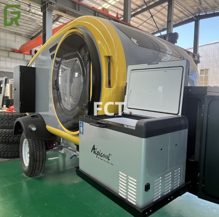 รถพ่วงสำหรับใช้ในบ้านสำหรับตั้งแคมป์เดินทางแบบแซนด์วิชปิดน้ำหนักเบาพร้อมอุปกรณ์เสริมสำหรับเต็นท์กันสาด