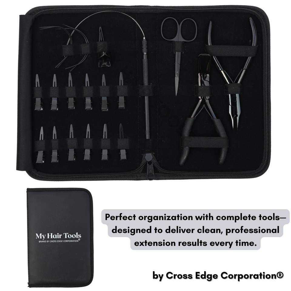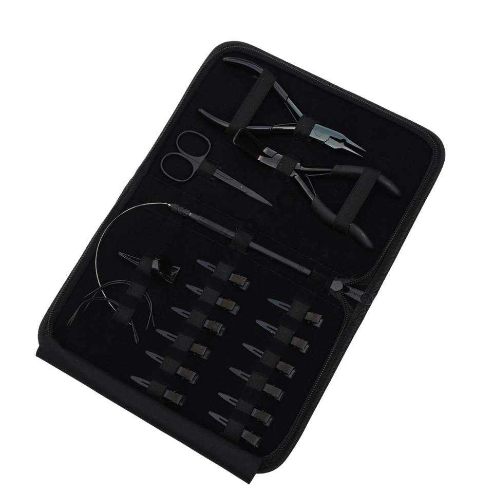 ชุดเครื่องมือต่อผมสีดำสำหรับร้านเสริมสวย พร้อมคีมถอดลูกปัด